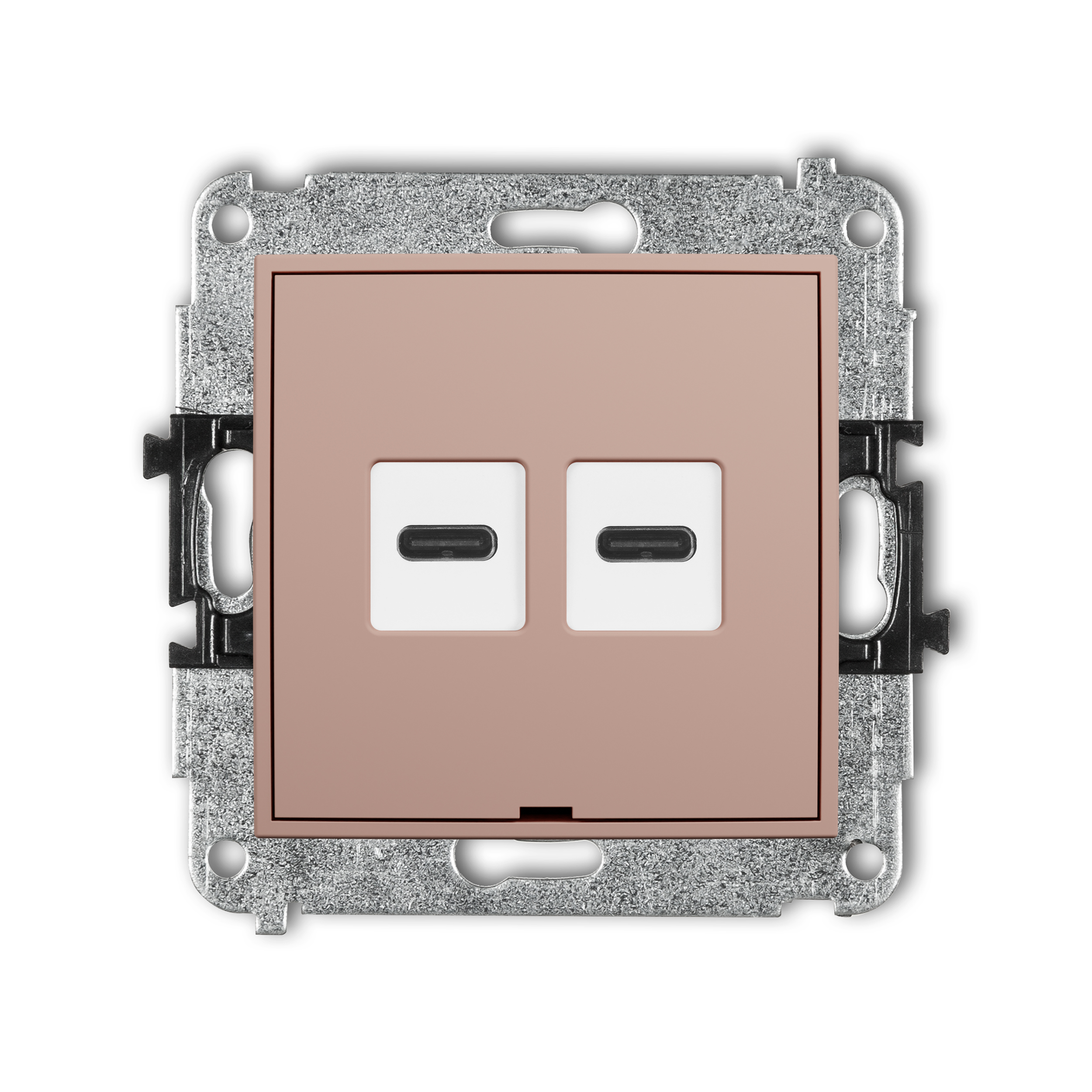 MINI Mechanizm ładowarki USB podwójnej 2xUSB C, 30W max., bez pola opisowego łososiowy