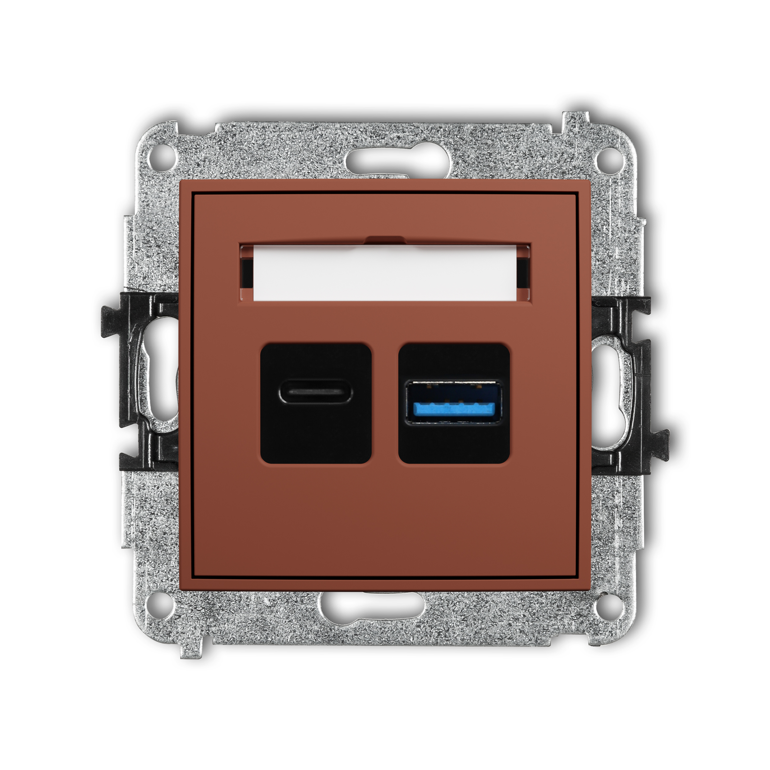 ICON Mechanizm ładowarki USB podwójnej USB C + USB A, 30W max. terakota