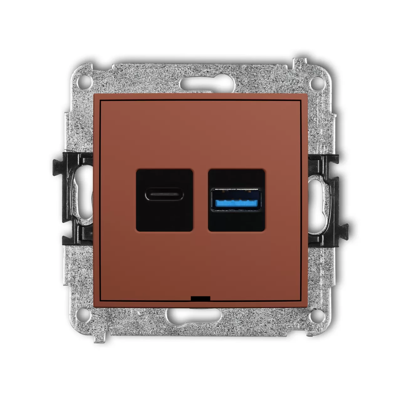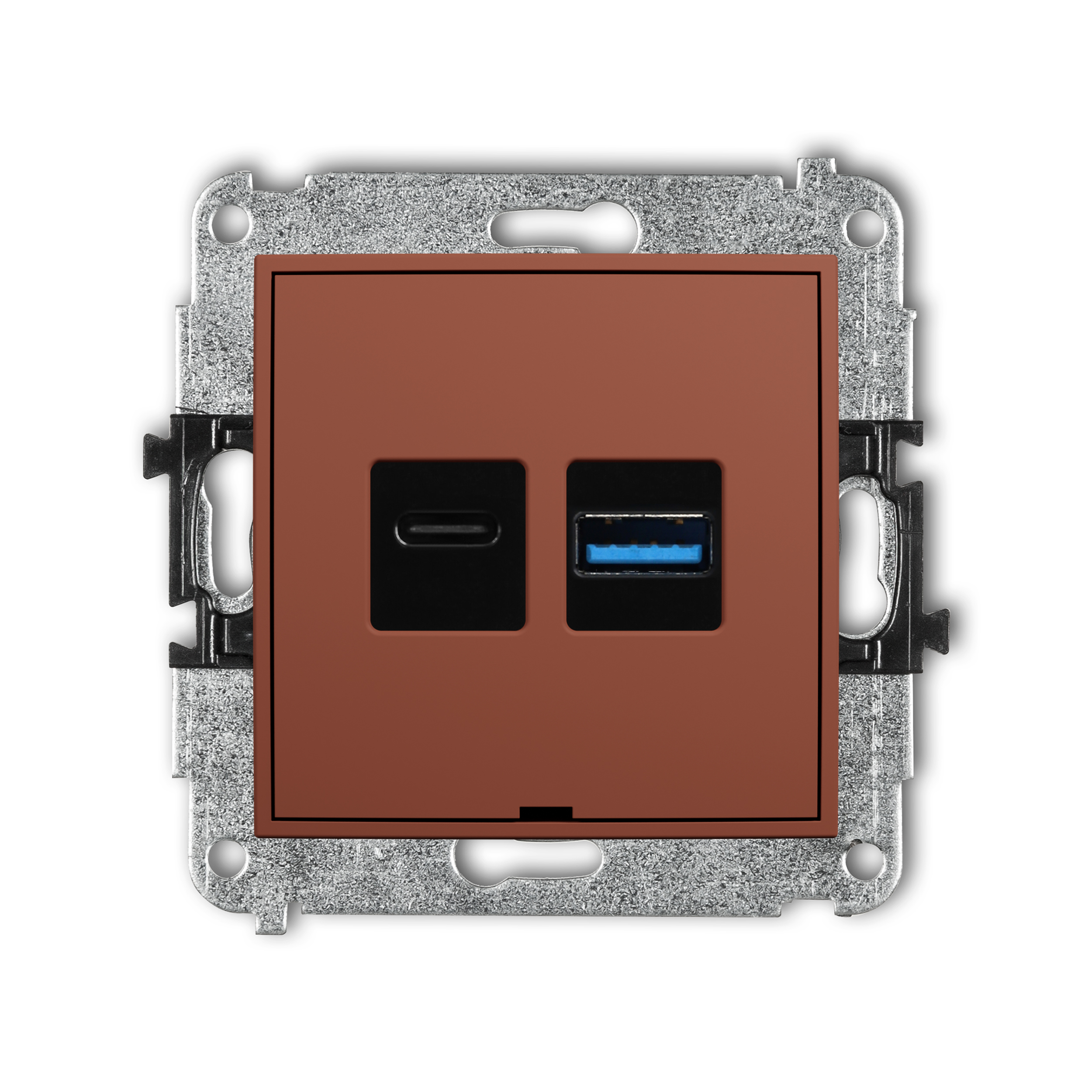ICON Mechanizm ładowarki USB podwójnej USB C + USB A, 30W max., bez pola opisowego terakota