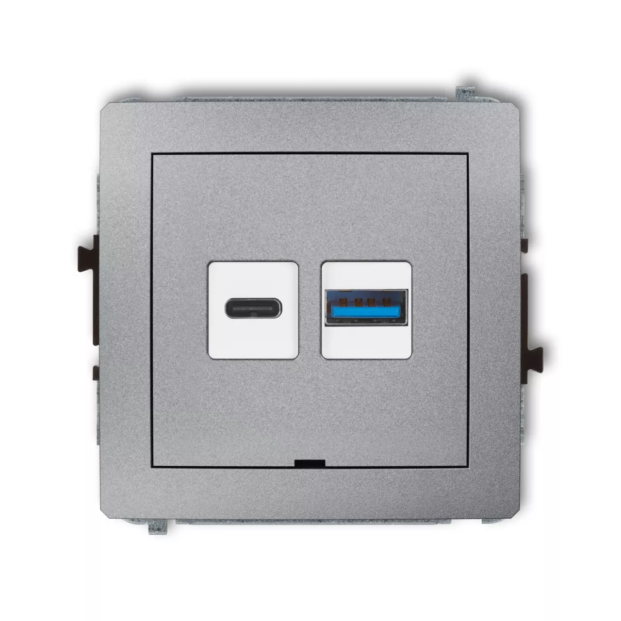 DECO Mechanizm ładowarki USB podwójnej USB C + USB A, 30W max., bez pola opisowego srebrny metalik