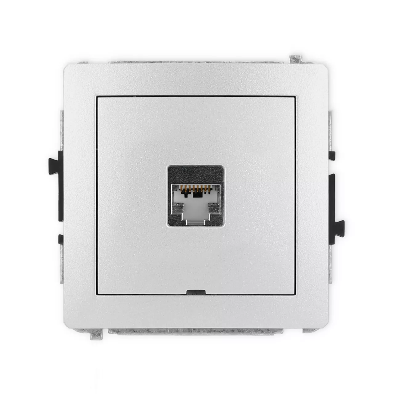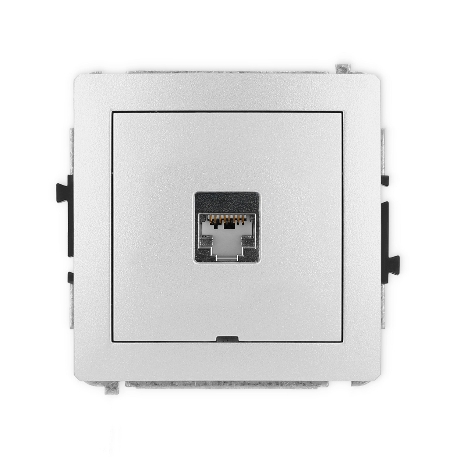 DECO Mechanizm gniazda komputerowego pojedynczego 1xRJ45, kat. 5e, ekranowany, 8-stykowy, bez pola opisowego srebrny metalik