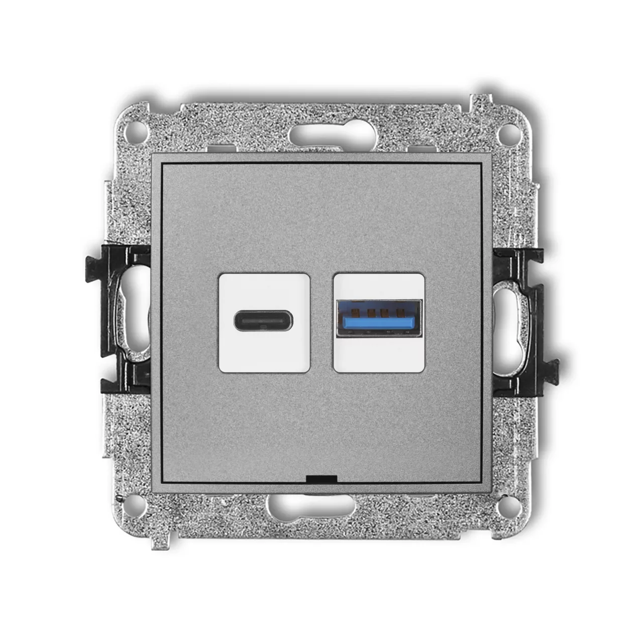 MINI Mechanizm ładowarki USB podwójnej USB C + USB A, 30W max., bez pola opisowego srebrny metalik