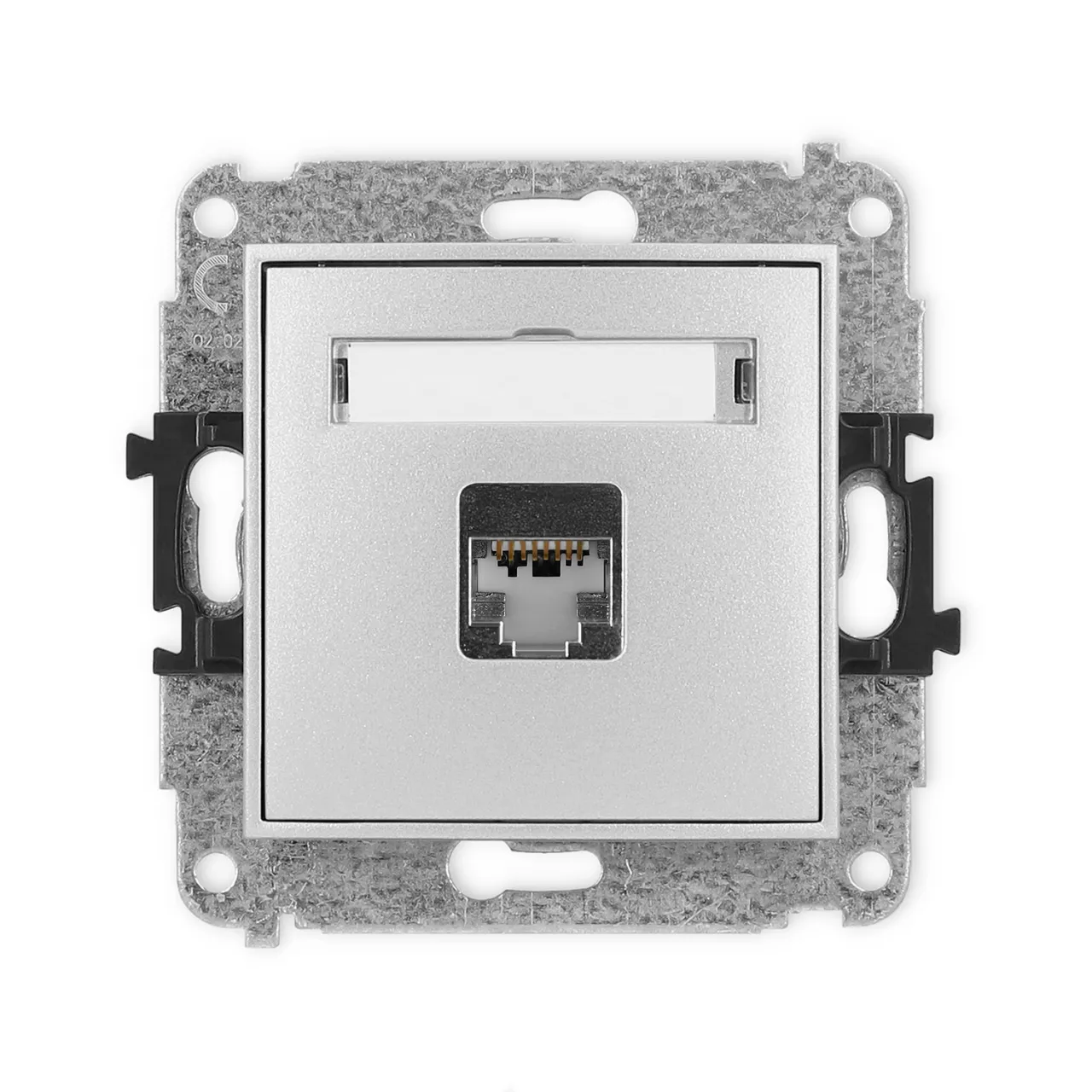 MINI Mechanizm gniazda komputerowego pojedynczego 1xRJ45, kat. 5e, ekranowany, 8-stykowy srebrny metalik