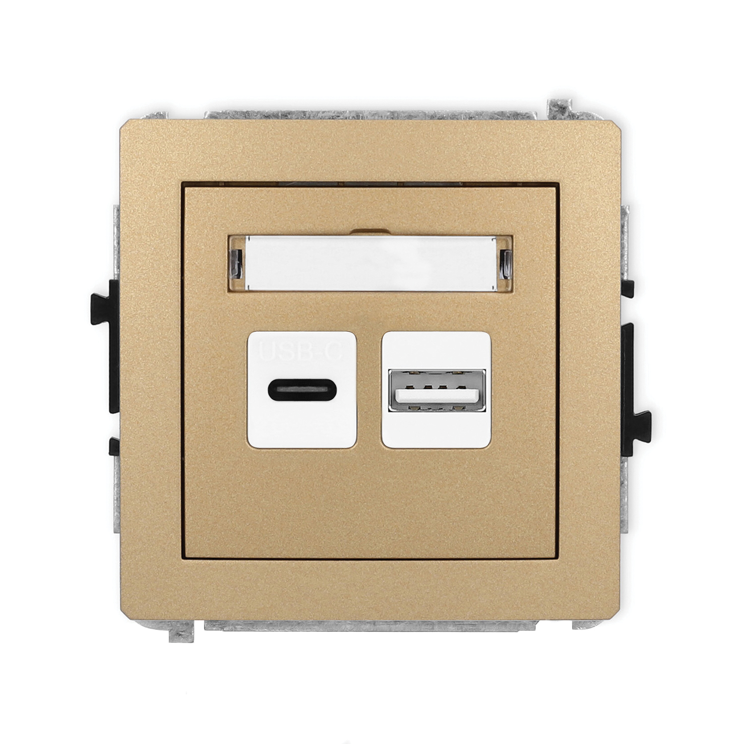 DECO Mechanizm ładowarki USB podwójnej USB C + USB A, 30W max. złoty metalik