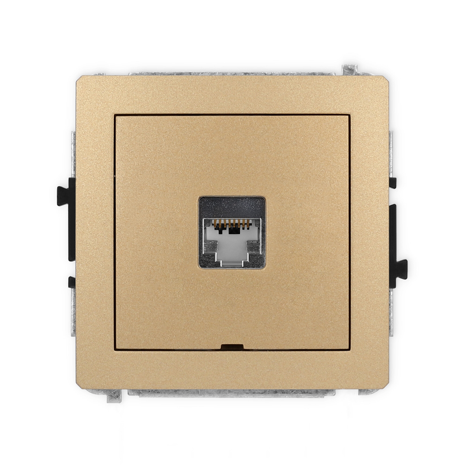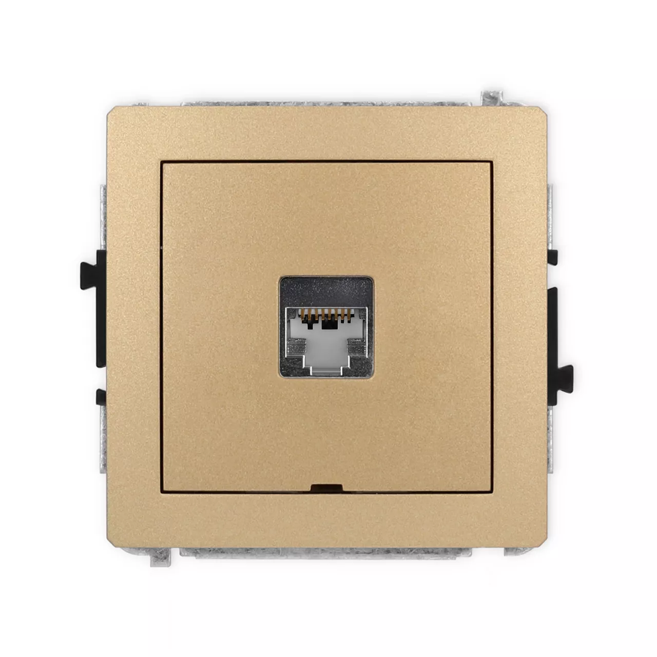 DECO Mechanizm gniazda komputerowego pojedynczego 1xRJ45, kat. 5e, ekranowany, 8-stykowy, bez pola opisowego złoty metalik