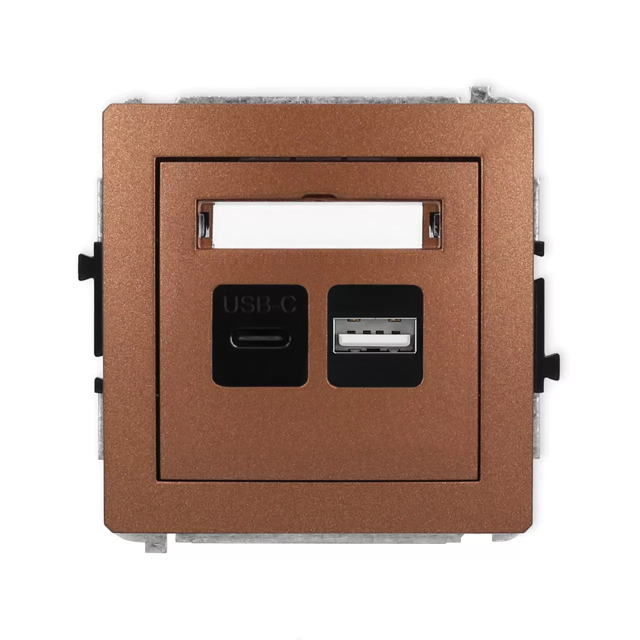 DECO Mechanizm ładowarki USB podwójnej USB C + USB A, 30W max. brązowy metalik