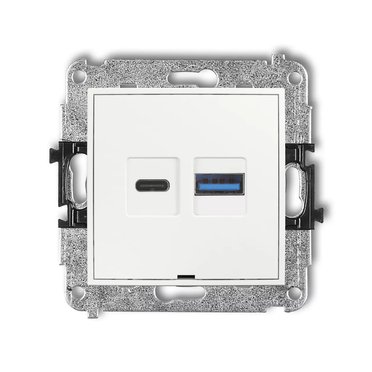 ICON Mechanizm ładowarki USB podwójnej USB C + USB A, 30W max., bez pola opisowego biały
