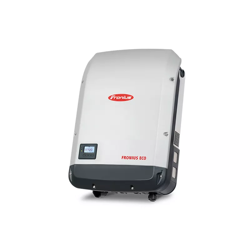 Trójfazowy falownik Fronius Eco o mocy 25 kW optymalnie spełnia wymogi dużych instalacji. Dzięki niewielkiej wadze i systemowi montażu SnapINverter, to beztransformatorowe urządzenie umożliwia prostą i szybką instalację wewnątrz lub na zewnątrz budynku. Przy stopniu ochrony IP 66 falownik ten wytycza nowe standardy. Zastosowanie zintegrowanych gniazd bezpieczników modułów na obu biegunach i opcjonalnej ochrony przeciwprzepięciowej sprawia, że nie ma potrzeby używania stałoprądowych skrzynek przyłączeniowych.
