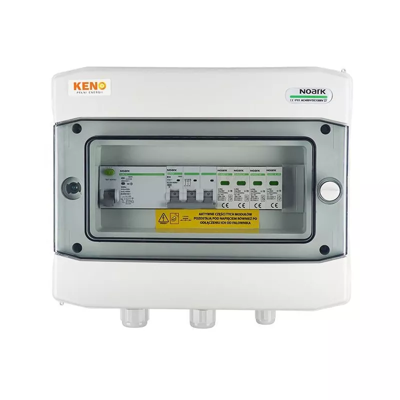 Rozdzielnica przyłączeniowa polskiego producenta KENO przeznaczona jest do zasilania falowników fotowoltaicznych w uziemionych i izolowanych instalacjach fotowoltaicznych. Realizuje ochronę przed skutkami zwarć i przeciążeń, a także ochronę przed skutkami wyładowań pośrednich oraz bezpośrednich po stronie prądu zmiennego. Dzięki wysokiemu stopniu ochrony IP możliwy montaż na zewnątrz. Konstrukcja rozdzielnicy przeznaczona do montażu natynkowego. Rozdzielnice w zależności od wyposażenia mogą realizować różne funkcje.