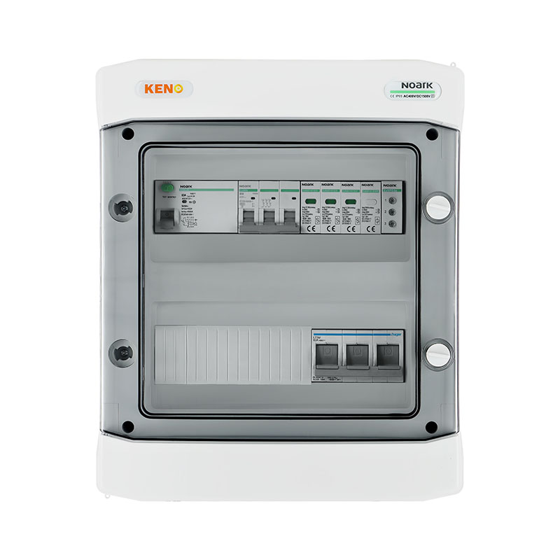 Rozdzielnica przyłączeniowa polskiego producenta KENO przeznaczona jest do zasilania falowników fotowoltaicznych w uziemionych i izolowanych instalacjach fotowoltaicznych. Realizuje ochronę przed skutkami zwarć i przeciążeń, a także ochronę przed skutkami wyładowań pośrednich oraz bezpośrednich po stronie prądu zmiennego. Dzięki wysokiemu stopniu ochrony IP możliwy montaż na zewnątrz. Konstrukcja rozdzielnicy przeznaczona do montażu natynkowego. Rozdzielnice w zależności od wyposażenia mogą realizować różne funkcje.