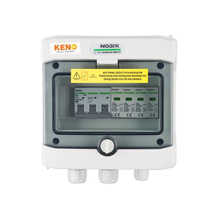Rozdzielnica przyłączeniowa polskiego producenta KENO przeznaczona jest do zasilania falowników fotowoltaicznych w uziemionych i izolowanych instalacjach fotowoltaicznych. Realizuje ochronę przed skutkami zwarć i przeciążeń, a także ochronę przed skutkami wyładowań pośrednich po stronie prądu zmiennego. Dzięki wysokiemu stopniu ochrony IP możliwy montaż na zewnątrz. Konstrukcja rozdzielnicy przeznaczona do montażu natynkowego. Rozdzielnice w zależności od wyposażenia mogą realizować różne funkcje.