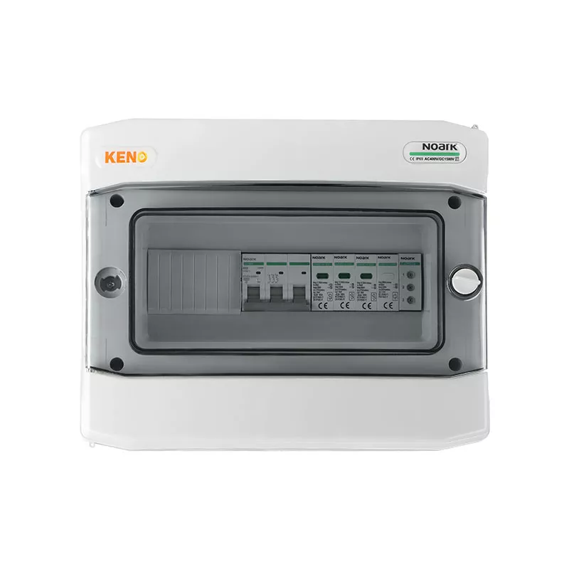 Rozdzielnica przyłączeniowa polskiego producenta KENO przeznaczona jest do zasilania falowników fotowoltaicznych w uziemionych i izolowanych instalacjach fotowoltaicznych. Realizuje ochronę przed skutkami zwarć i przeciążeń, a także ochronę przed skutkami wyładowań pośrednich oraz bezpośrednich po stronie prądu zmiennego. Dzięki wysokiemu stopniu ochrony IP możliwy montaż na zewnątrz. Konstrukcja rozdzielnicy przeznaczona do montażu natynkowego. Rozdzielnice w zależności od wyposażenia mogą realizować różne funkcje.