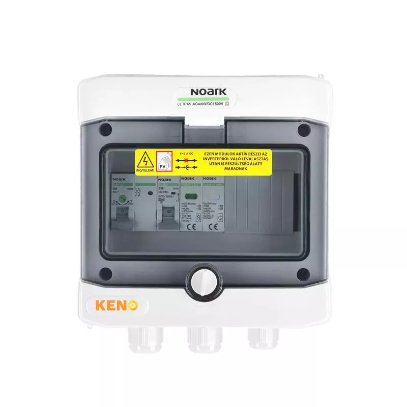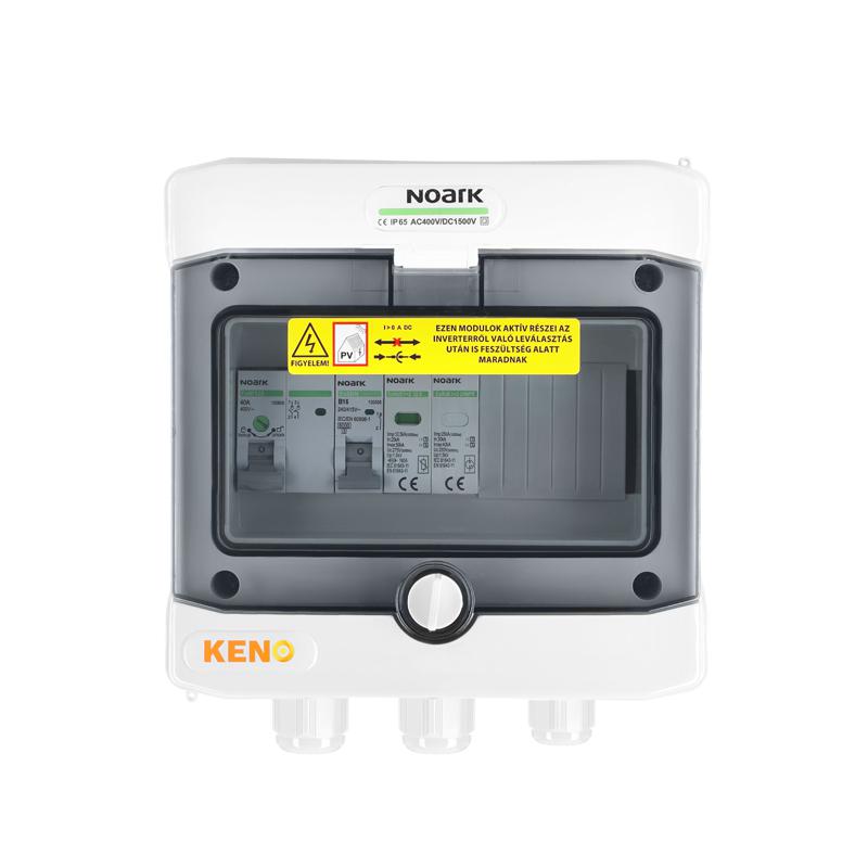 Rozdzielnica przyłączeniowa polskiego producenta KENO przeznaczona jest do zasilania falowników fotowoltaicznych w uziemionych i izolowanych instalacjach fotowoltaicznych. Realizuje ochronę przed skutkami zwarć i przeciążeń, a także ochronę przed skutkami wyładowań pośrednich oraz bezpośrednich po stronie prądu zmiennego. Dzięki wysokiemu stopniu ochrony IP możliwy montaż na zewnątrz. Konstrukcja rozdzielnicy przeznaczona do montażu natynkowego. Rozdzielnice w zależności od wyposażenia mogą realizować różne funkcje.