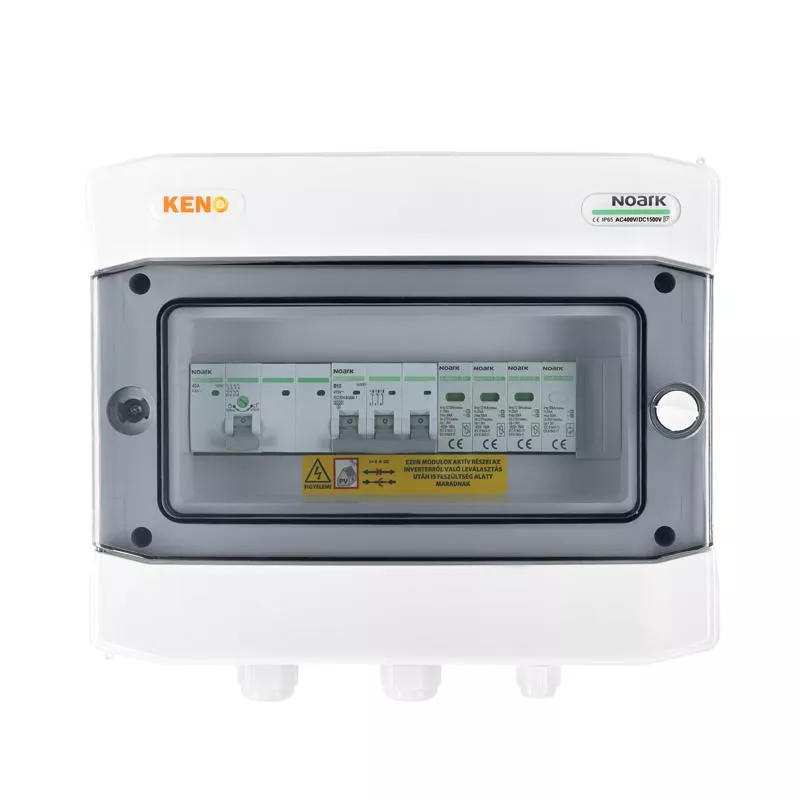 Rozdzielnica przyłączeniowa polskiego producenta KENO przeznaczona jest do zasilania falowników fotowoltaicznych w uziemionych i izolowanych instalacjach fotowoltaicznych. Realizuje ochronę przed skutkami zwarć i przeciążeń, a także ochronę przed skutkami wyładowań pośrednich oraz bezpośrednich po stronie prądu zmiennego. Dzięki wysokiemu stopniu ochrony IP możliwy montaż na zewnątrz. Konstrukcja rozdzielnicy przeznaczona do montażu natynkowego. Rozdzielnice w zależności od wyposażenia mogą realizować różne funkcje.
