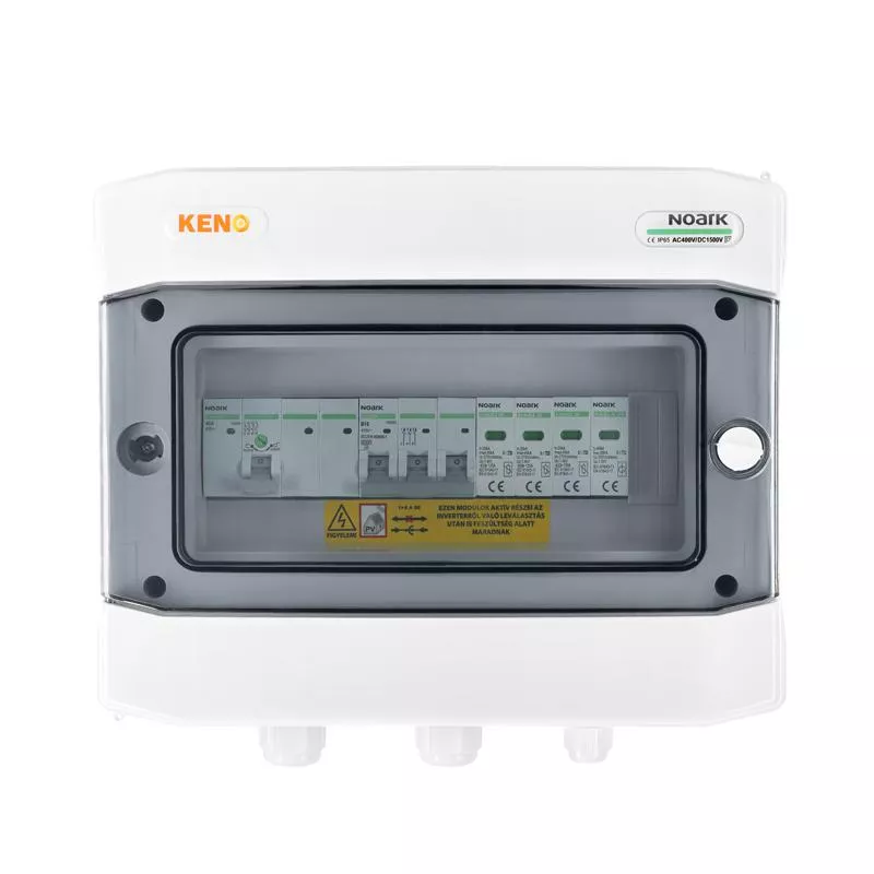 Rozdzielnica przyłączeniowa polskiego producenta KENO przeznaczona jest do zasilania falowników fotowoltaicznych w uziemionych i izolowanych instalacjach fotowoltaicznych. Realizuje ochronę przed skutkami zwarć i przeciążeń, a także ochronę przed skutkami wyładowań pośrednich po stronie prądu zmiennego. Dzięki wysokiemu stopniu ochrony IP możliwy montaż na zewnątrz. Konstrukcja rozdzielnicy przeznaczona do montażu natynkowego. Rozdzielnice w zależności od wyposażenia mogą realizować różne funkcje.