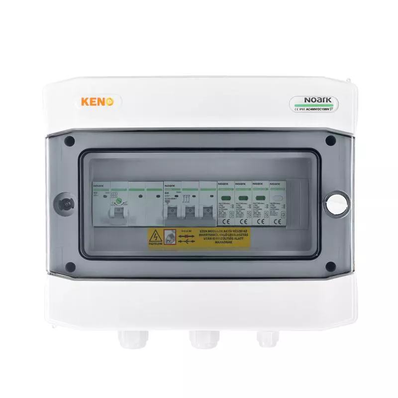 Rozdzielnica przyłączeniowa polskiego producenta KENO przeznaczona jest do zasilania falowników fotowoltaicznych w uziemionych i izolowanych instalacjach fotowoltaicznych. Realizuje ochronę przed skutkami zwarć i przeciążeń, a także ochronę przed skutkami wyładowań pośrednich oraz bezpośrednich po stronie prądu zmiennego. Dzięki wysokiemu stopniu ochrony IP możliwy montaż na zewnątrz. Konstrukcja rozdzielnicy przeznaczona do montażu natynkowego. Rozdzielnice w zależności od wyposażenia mogą realizować różne funkcje.