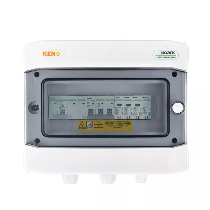 Rozdzielnica przyłączeniowa polskiego producenta KENO przeznaczona jest do zasilania falowników fotowoltaicznych w uziemionych i izolowanych instalacjach fotowoltaicznych. Realizuje ochronę przed skutkami zwarć i przeciążeń, a także ochronę przed skutkami wyładowań pośrednich oraz bezpośrednich po stronie prądu zmiennego. Dzięki wysokiemu stopniu ochrony IP możliwy montaż na zewnątrz. Konstrukcja rozdzielnicy przeznaczona do montażu natynkowego. Rozdzielnice w zależności od wyposażenia mogą realizować różne funkcje.