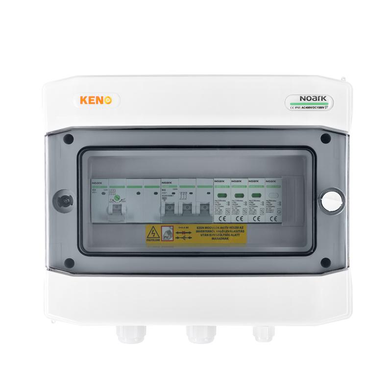 Rozdzielnica przyłączeniowa polskiego producenta KENO przeznaczona jest do zasilania falowników fotowoltaicznych w uziemionych i izolowanych instalacjach fotowoltaicznych. Realizuje ochronę przed skutkami zwarć i przeciążeń, a także ochronę przed skutkami wyładowań pośrednich oraz bezpośrednich po stronie prądu zmiennego. Dzięki wysokiemu stopniu ochrony IP możliwy montaż na zewnątrz. Konstrukcja rozdzielnicy przeznaczona do montażu natynkowego. Rozdzielnice w zależności od wyposażenia mogą realizować różne funkcje.