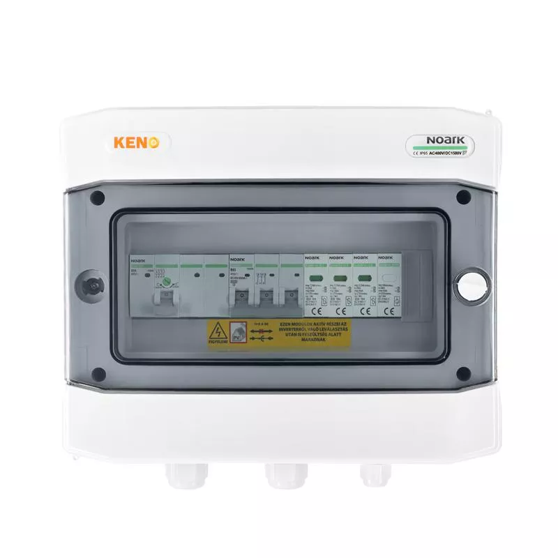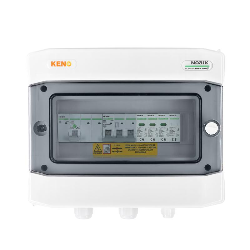 Rozdzielnica przyłączeniowa polskiego producenta KENO przeznaczona jest do zasilania falowników fotowoltaicznych w uziemionych i izolowanych instalacjach fotowoltaicznych. Realizuje ochronę przed skutkami zwarć i przeciążeń, a także ochronę przed skutkami wyładowań pośrednich oraz bezpośrednich po stronie prądu zmiennego. Dzięki wysokiemu stopniu ochrony IP możliwy montaż na zewnątrz. Konstrukcja rozdzielnicy przeznaczona do montażu natynkowego. Rozdzielnice w zależności od wyposażenia mogą realizować różne funkcje.