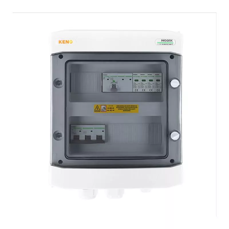 Rozdzielnica przyłączeniowa polskiego producenta KENO przeznaczona jest do zasilania falowników fotowoltaicznych w uziemionych i izolowanych instalacjach fotowoltaicznych. Realizuje ochronę przed skutkami zwarć i przeciążeń, a także ochronę przed skutkami wyładowań pośrednich po stronie prądu zmiennego. Dzięki wysokiemu stopniu ochrony IP możliwy montaż na zewnątrz. Konstrukcja rozdzielnicy przeznaczona do montażu natynkowego. Rozdzielnice w zależności od wyposażenia mogą realizować różne funkcje.