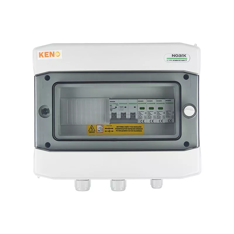 Rozdzielnica przyłączeniowa polskiego producenta KENO przeznaczona jest do zasilania falowników fotowoltaicznych w uziemionych i izolowanych instalacjach fotowoltaicznych. Realizuje ochronę przed skutkami zwarć i przeciążeń, a także ochronę przed skutkami wyładowań pośrednich oraz bezpośrednich po stronie prądu zmiennego. Dzięki wysokiemu stopniu ochrony IP możliwy montaż na zewnątrz. Konstrukcja rozdzielnicy przeznaczona do montażu natynkowego. Rozdzielnice w zależności od wyposażenia mogą realizować różne funkcje.