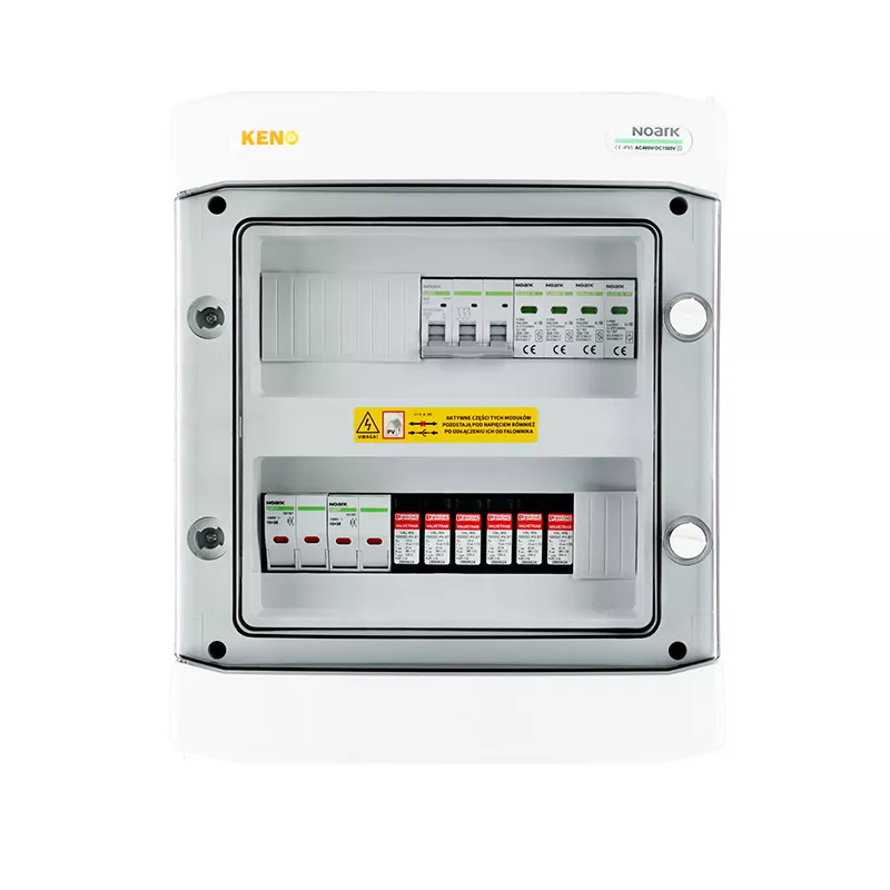 Rozdzielnica przyłączeniowa polskiego producenta KENO przeznaczona jest do zasilania falowników fotowoltaicznych, zabezpieczenia przed skutkami zwarć i przeciążeń, a także ochrony przed skutkami wyładowań pośrednich po stronie prądu zmiennego i stałego. Rozdzielnicę należy stosować w uziemionych i izolowanych instalacjach fotowoltaicznych. Dzięki wysokiemu stopniu ochrony IP możliwy montaż na zewnątrz. Konstrukcja rozdzielnicy przeznaczona do montażu natynkowego. Rozdzielnice w zależności od wyposażenia mogą realizować różne funkcje.