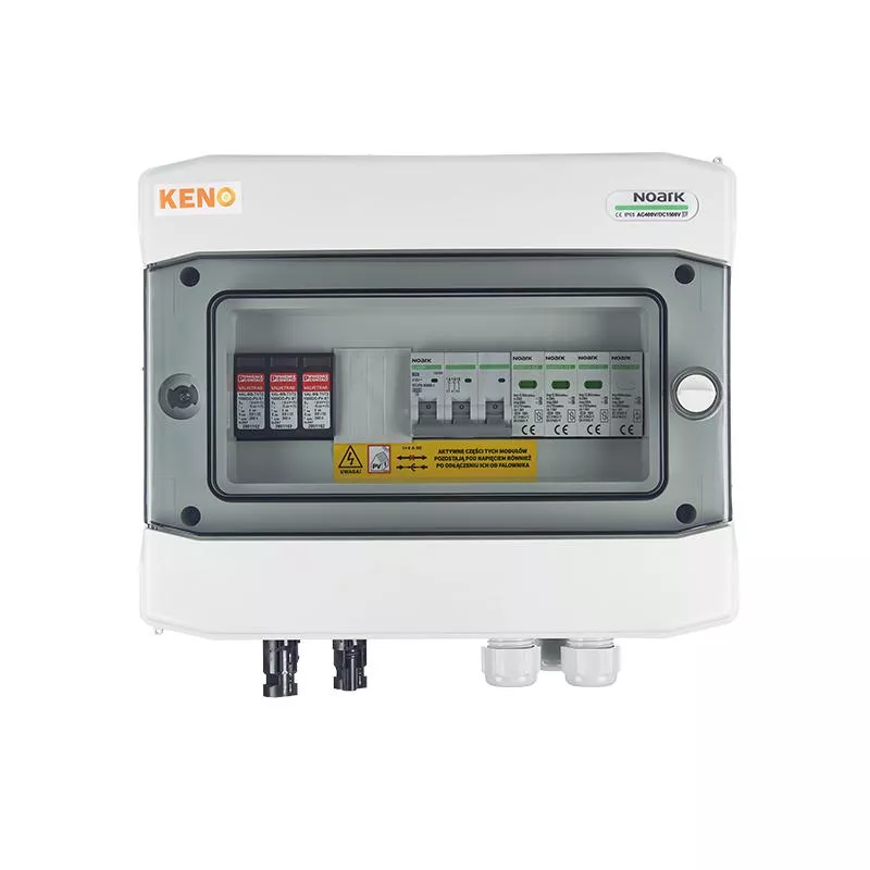 Rozdzielnica przyłączeniowa polskiego producenta KENO przeznaczona jest do zasilania falowników fotowoltaicznych, zabezpieczenia przed skutkami zwarć i przeciążeń, a także ochrony przed skutkami wyładowań pośrednich oraz bezpośrednich po stronie prądu zmiennego i stałego. Rozdzielnicę należy stosować w uziemionych i izolowanych instalacjach fotowoltaicznych. Dzięki wysokiemu stopniu ochrony IP możliwy montaż na zewnątrz. Konstrukcja rozdzielnicy przeznaczona do montażu natynkowego. Rozdzielnice w zależności od wyposażenia mogą realizować różne funkcje.