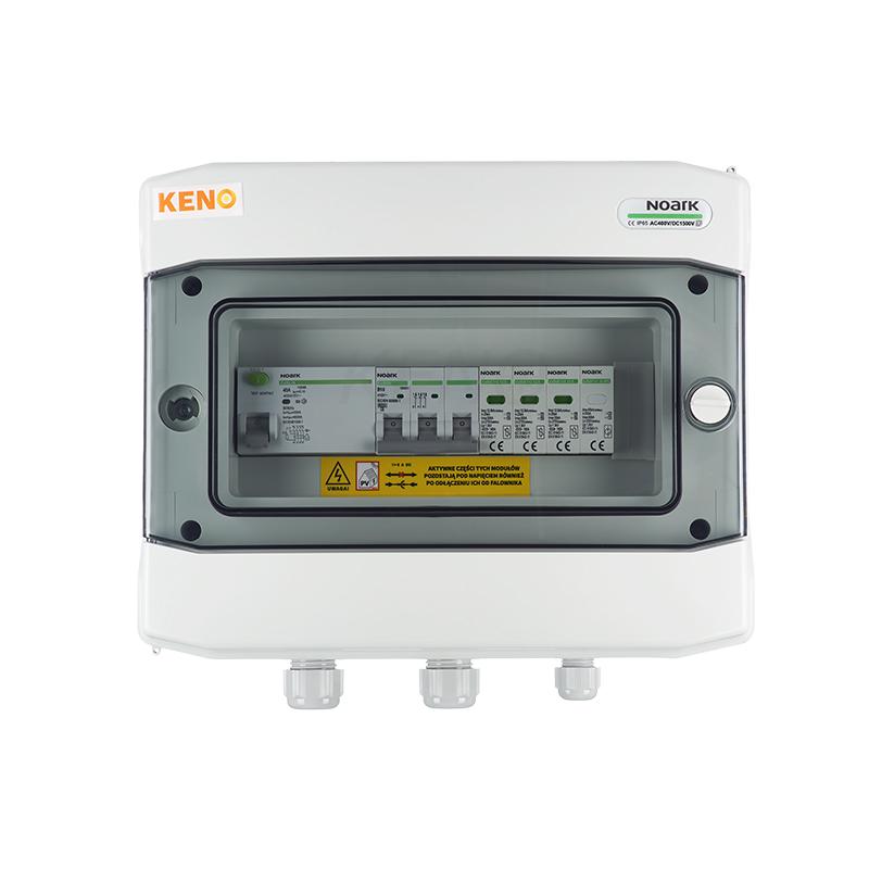 Rozdzielnica przyłączeniowa polskiego producenta KENO przeznaczona jest do zasilania falowników fotowoltaicznych w uziemionych i izolowanych instalacjach fotowoltaicznych. Realizuje ochronę przed skutkami zwarć i przeciążeń, a także ochronę przed skutkami wyładowań pośrednich oraz bezpośrednich po stronie prądu zmiennego. Dzięki wysokiemu stopniu ochrony IP możliwy montaż na zewnątrz. Konstrukcja rozdzielnicy przeznaczona do montażu natynkowego. Rozdzielnice w zależności od wyposażenia mogą realizować różne funkcje.