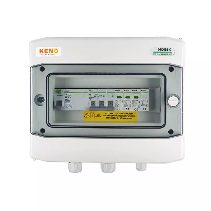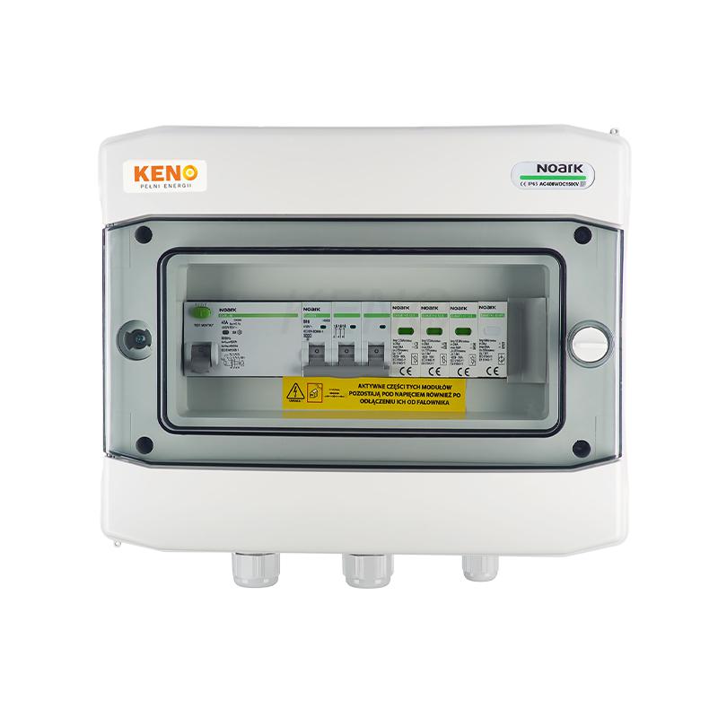 Rozdzielnica przyłączeniowa polskiego producenta KENO przeznaczona jest do zasilania falowników fotowoltaicznych w uziemionych i izolowanych instalacjach fotowoltaicznych. Realizuje ochronę przed skutkami zwarć i przeciążeń, a także ochronę przed skutkami wyładowań pośrednich oraz bezpośrednich po stronie prądu zmiennego. Dzięki wysokiemu stopniu ochrony IP możliwy montaż na zewnątrz. Konstrukcja rozdzielnicy przeznaczona do montażu natynkowego. Rozdzielnice w zależności od wyposażenia mogą realizować różne funkcje.