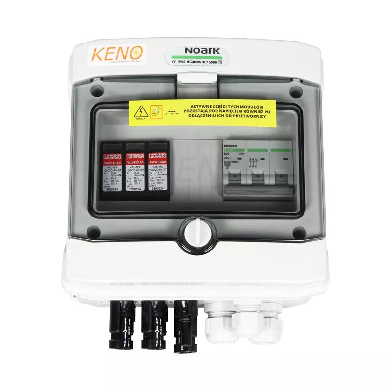 Rozdzielnica przyłączeniowa polskiego producenta KENO przeznaczona jest do zasilania falowników fotowoltaicznych, zabezpieczenia przed skutkami zwarć i przeciążeń, a także ochrony przed skutkami wyładowań pośrednich po stronie prądu stałego. Rozdzielnicę należy stosować w uziemionych i izolowanych instalacjach fotowoltaicznych. Dzięki wysokiemu stopniu ochrony IP możliwy montaż na zewnątrz. Konstrukcja rozdzielnicy przeznaczona do montażu natynkowego. Rozdzielnice w zależności od wyposażenia mogą realizować różne funkcje. Prefabrykowane rozdzielnice przyłączeniowe KENO oferują wiele znaczących korzyści w porównaniu do rozdzielnic montowanych we własnym zapleczu warsztatowym. Gotowe rozdzielnice przyłączeniowe są zaprojektowane i skonstruowane zgodnie z obowiązującymi normami i przepisami. Spełniają wysokie standardy bezpieczeństwa i jakości, co gwarantuje pewność, że instalacja oparta na naszych rozdzielnicach będzie wykonana poprawnie i bezpiecznie. KENO posiada w ofercie rozdzielnice przyłączeniowe w różnych rozmiarach i konfiguracjach. Można je łatwo dostosować do indywidualnych potrzeb i wymagań energetycznych. Wybierając gotowe rozdzielnice przyłączeniowe KENO, zyskują Państwo również możliwość uzyskania profesjonalnego wsparcia technicznego specjalistów ze strony doświadczonego producenta.