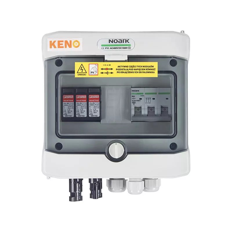 Rozdzielnica przyłączeniowa polskiego producenta KENO przeznaczona jest do zasilania falowników fotowoltaicznych, zabezpieczenia przed skutkami zwarć i przeciążeń, a także ochrony przed skutkami wyładowań pośrednich oraz bezpośrednich po stronie prądu stałego. Rozdzielnicę należy stosować w uziemionych i izolowanych instalacjach fotowoltaicznych. Dzięki wysokiemu stopniu ochrony IP możliwy montaż na zewnątrz. Konstrukcja rozdzielnicy przeznaczona do montażu natynkowego. Rozdzielnice w zależności od wyposażenia mogą realizować różne funkcje. Prefabrykowane rozdzielnice przyłączeniowe KENO oferują wiele znaczących korzyści w porównaniu do rozdzielnic montowanych we własnym zapleczu warsztatowym. Gotowe rozdzielnice przyłączeniowe są zaprojektowane i skonstruowane zgodnie z obowiązującymi normami i przepisami. Spełniają wysokie standardy bezpieczeństwa i jakości, co gwarantuje pewność, że instalacja oparta na naszych rozdzielnicach będzie wykonana poprawnie i bezpiecznie. KENO posiada w ofercie rozdzielnice przyłączeniowe w różnych rozmiarach i konfiguracjach. Można je łatwo dostosować do indywidualnych potrzeb i wymagań energetycznych. Wybierając gotowe rozdzielnice przyłączeniowe KENO, zyskują Państwo również możliwość uzyskania profesjonalnego wsparcia technicznego specjalistów ze strony doświadczonego producenta.