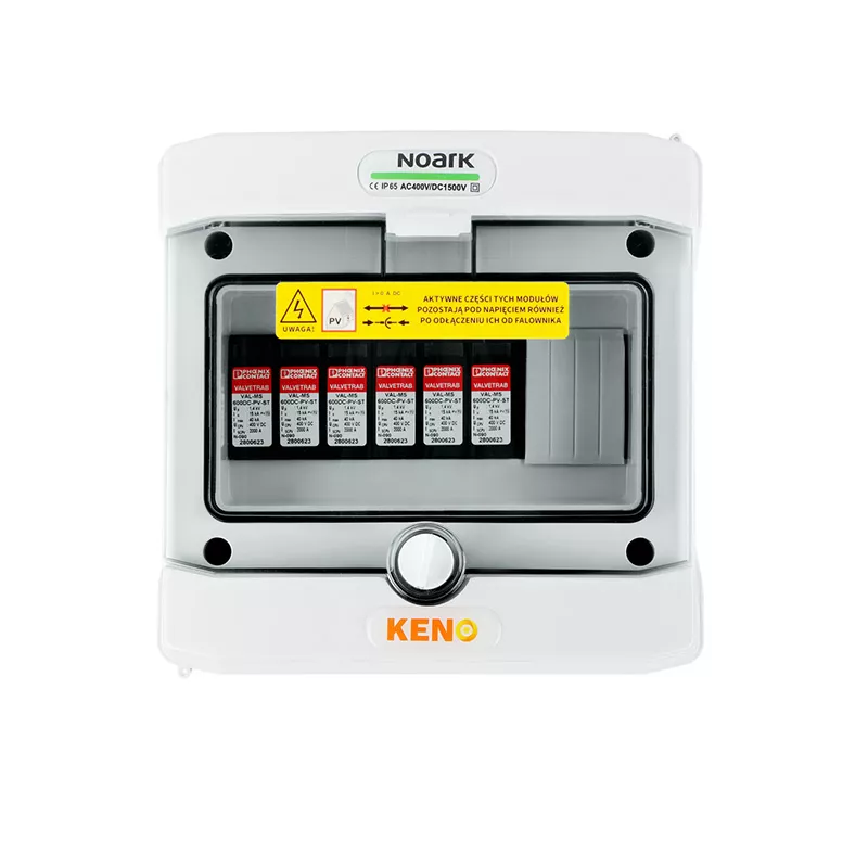 Rozdzielnica przyłączeniowa polskiego producenta KENO realizuje ochronę przed skutkami wyładowań pośrednich po stronie prądu stałego. Przeznaczona jest do stosowania w uziemionych i izolowanych instalacjach fotowoltaicznych. Dzięki wysokiemu stopniu ochrony IP możliwy montaż na zewnątrz. Konstrukcja rozdzielnicy przeznaczona do montażu natynkowego. Rozdzielnice w zależności od wyposażenia mogą realizować różne funkcje.