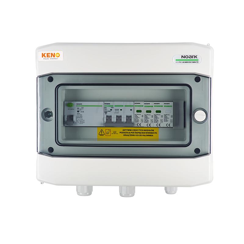 Rozdzielnica przyłączeniowa polskiego producenta KENO przeznaczona jest do zasilania falowników fotowoltaicznych w uziemionych i izolowanych instalacjach fotowoltaicznych. Realizuje ochronę przed skutkami zwarć i przeciążeń, a także ochronę przed skutkami wyładowań pośrednich oraz bezpośrednich po stronie prądu zmiennego. Dzięki wysokiemu stopniu ochrony IP możliwy montaż na zewnątrz. Konstrukcja rozdzielnicy przeznaczona do montażu natynkowego. Rozdzielnice w zależności od wyposażenia mogą realizować różne funkcje.