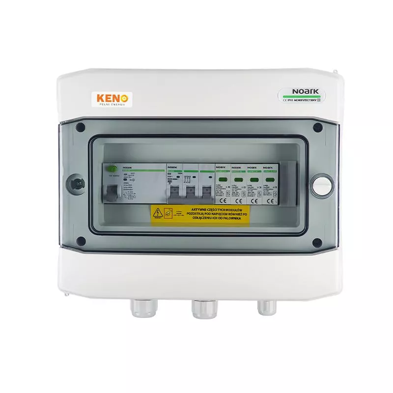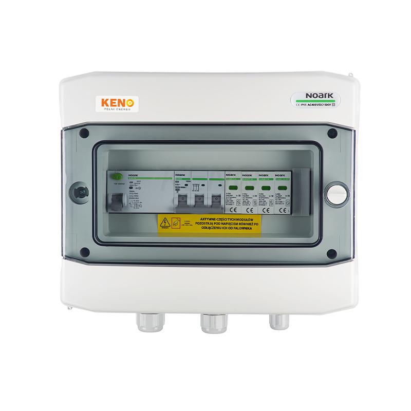 Rozdzielnica przyłączeniowa polskiego producenta KENO przeznaczona jest do zasilania falowników fotowoltaicznych w uziemionych i izolowanych instalacjach fotowoltaicznych. Realizuje ochronę przed skutkami zwarć i przeciążeń, a także ochronę przed skutkami wyładowań pośrednich po stronie prądu zmiennego. Dzięki wysokiemu stopniu ochrony IP możliwy montaż na zewnątrz. Konstrukcja rozdzielnicy przeznaczona do montażu natynkowego. Rozdzielnice w zależności od wyposażenia mogą realizować różne funkcje.