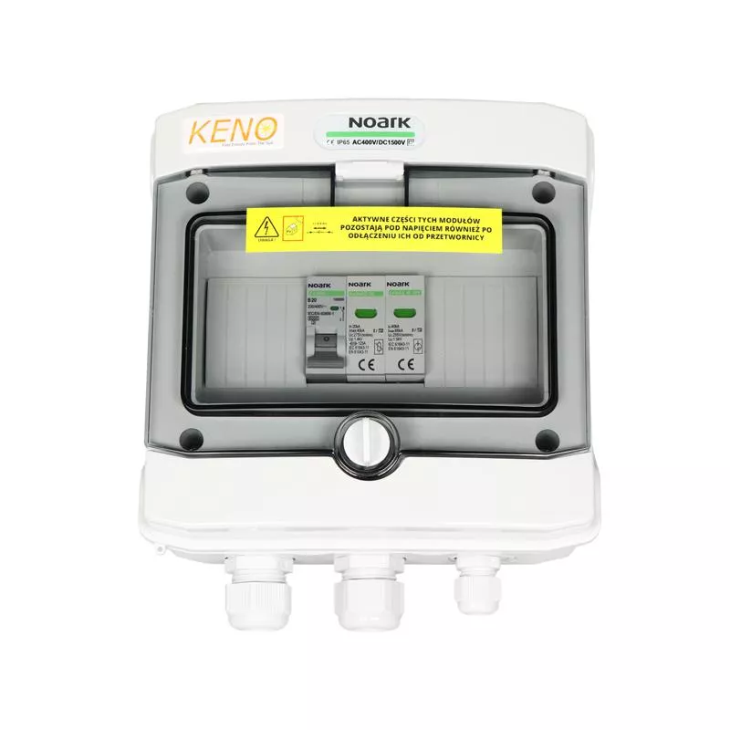 Rozdzielnica przyłączeniowa polskiego producenta KENO przeznaczona jest do zasilania falowników fotowoltaicznych w uziemionych i izolowanych instalacjach fotowoltaicznych. Realizuje ochronę przed skutkami zwarć i przeciążeń, a także ochronę przed skutkami wyładowań pośrednich po stronie prądu zmiennego. Dzięki wysokiemu stopniu ochrony IP możliwy montaż na zewnątrz. Konstrukcja rozdzielnicy przeznaczona do montażu natynkowego. Rozdzielnice w zależności od wyposażenia mogą realizować różne funkcje.
