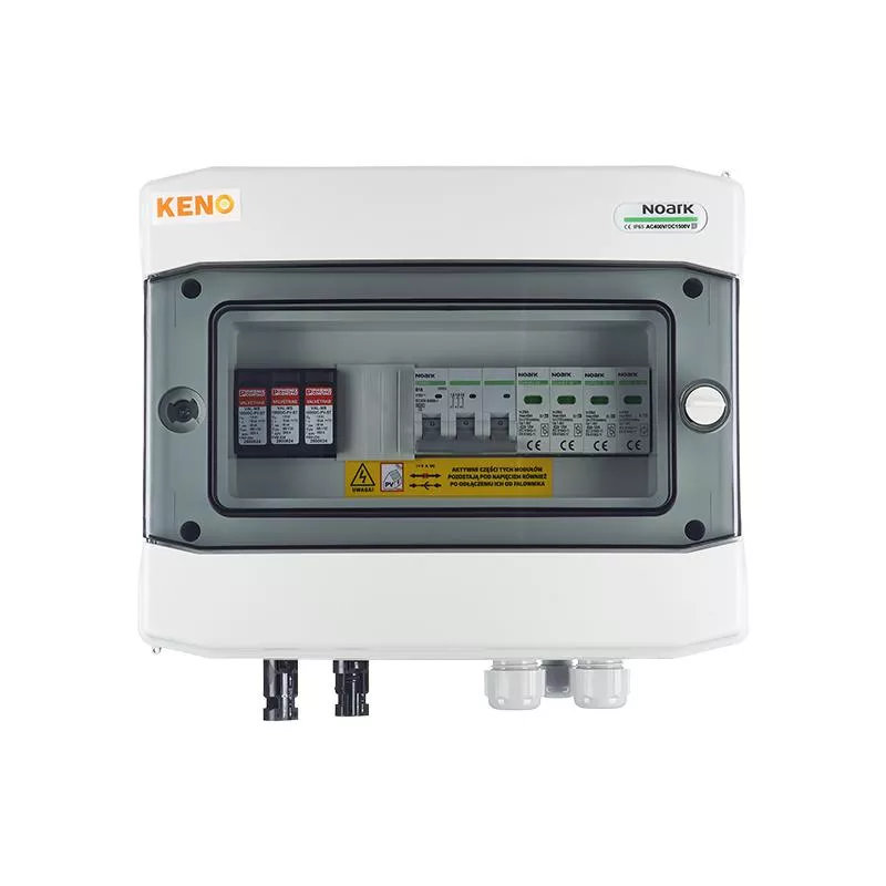 Rozdzielnica przyłączeniowa polskiego producenta KENO przeznaczona jest do zasilania falowników fotowoltaicznych, zabezpieczenia przed skutkami zwarć i przeciążeń, a także ochrony przed skutkami wyładowań pośrednich po stronie prądu zmiennego i stałego. Rozdzielnicę należy stosować w uziemionych i izolowanych instalacjach fotowoltaicznych. Dzięki wysokiemu stopniu ochrony IP możliwy montaż na zewnątrz. Konstrukcja rozdzielnicy przeznaczona do montażu natynkowego. Rozdzielnice w zależności od wyposażenia mogą realizować różne funkcje.