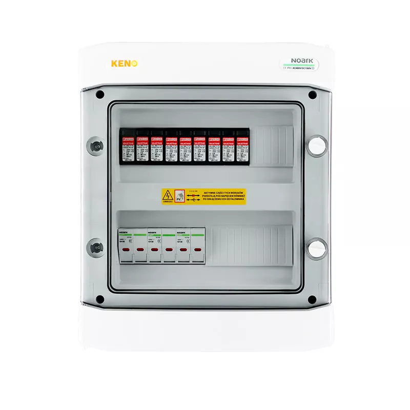 Rozdzielnica przyłączeniowa polskiego producenta KENO realizuje ochronę przed skutkami wyładowań pośrednich oraz bezpośrednich po stronie prądu stałego. Przeznaczona jest do stosowania w uziemionych i izolowanych instalacjach fotowoltaicznych. Dzięki wysokiemu stopniu ochrony IP możliwy montaż na zewnątrz. Konstrukcja rozdzielnicy przeznaczona do montażu natynkowego. Rozdzielnice w zależności od wyposażenia mogą realizować różne funkcje.