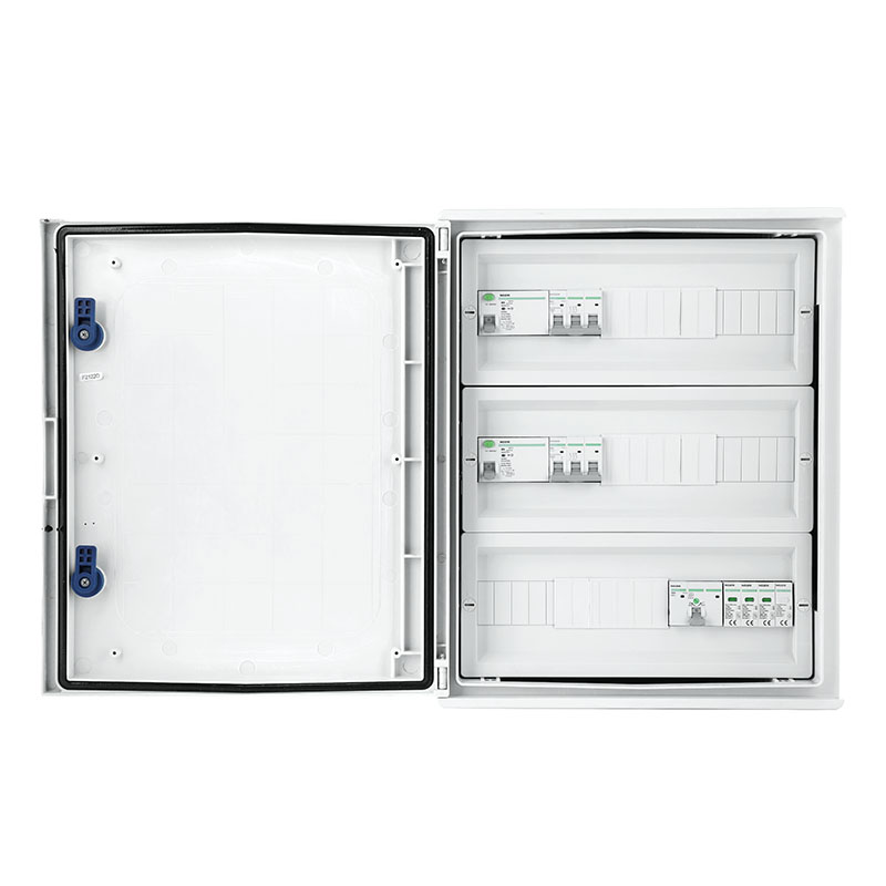 Rozdzielnica przyłączeniowa AC, IP 66 z ogranicznikiem przepięć typ 1+2, 2x 32A 3-F, 2x RCD 300mA typ A, FR 100A