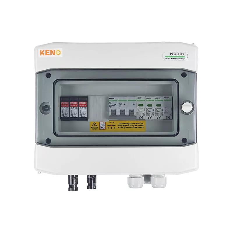 Rozdzielnica przyłączeniowa polskiego producenta KENO przeznaczona jest do zasilania falowników fotowoltaicznych, zabezpieczenia przed skutkami zwarć i przeciążeń, a także ochrony przed skutkami wyładowań pośrednich oraz bezpośrednich po stronie prądu zmiennego i stałego. Rozdzielnicę należy stosować w uziemionych i izolowanych instalacjach fotowoltaicznych. Dzięki wysokiemu stopniu ochrony IP możliwy montaż na zewnątrz. Konstrukcja rozdzielnicy przeznaczona do montażu natynkowego. Rozdzielnice w zależności od wyposażenia mogą realizować różne funkcje.