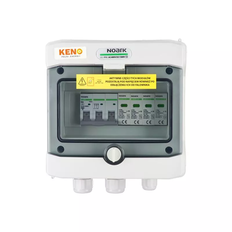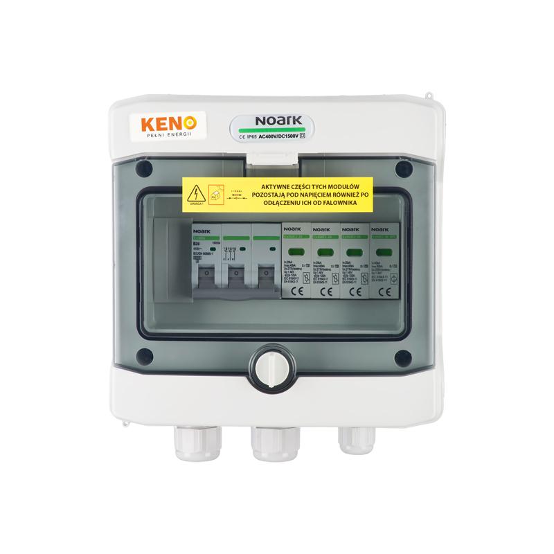 Rozdzielnica przyłączeniowa polskiego producenta KENO przeznaczona jest do zasilania falowników fotowoltaicznych w uziemionych i izolowanych instalacjach fotowoltaicznych. Realizuje ochronę przed skutkami zwarć i przeciążeń, a także ochronę przed skutkami wyładowań pośrednich po stronie prądu zmiennego. Dzięki wysokiemu stopniu ochrony IP możliwy montaż na zewnątrz. Konstrukcja rozdzielnicy przeznaczona do montażu natynkowego. Rozdzielnice w zależności od wyposażenia mogą realizować różne funkcje.