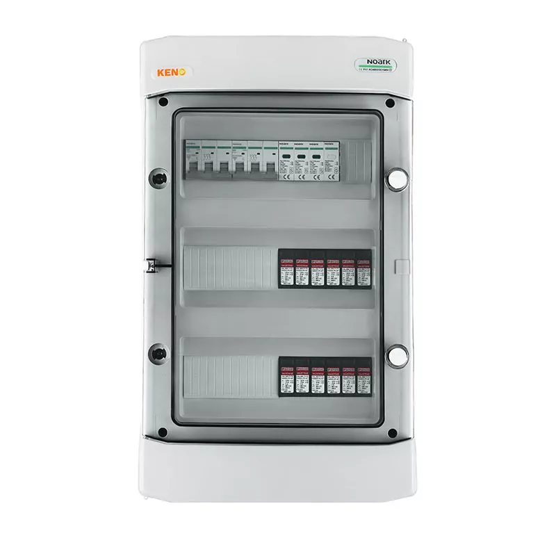 Rozdzielnica przyłączeniowa polskiego producenta KENO przeznaczona jest do zasilania falowników fotowoltaicznych, zabezpieczenia przed skutkami zwarć i przeciążeń, a także ochrony przed skutkami wyładowań pośrednich oraz bezpośrednich po stronie prądu zmiennego i stałego. Rozdzielnicę należy stosować w uziemionych i izolowanych instalacjach fotowoltaicznych. Dzięki wysokiemu stopniu ochrony IP możliwy montaż na zewnątrz. Konstrukcja rozdzielnicy przeznaczona do montażu natynkowego. Rozdzielnice w zależności od wyposażenia mogą realizować różne funkcje.