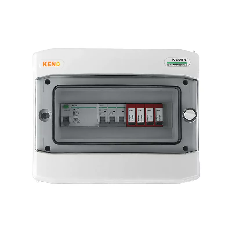 Rozdzielnica przyłączeniowa polskiego producenta KENO przeznaczona jest do zasilania falowników fotowoltaicznych w uziemionych i izolowanych instalacjach fotowoltaicznych. Realizuje ochronę przed skutkami zwarć i przeciążeń, a także ochronę przed skutkami wyładowań pośrednich po stronie prądu zmiennego. Dzięki wysokiemu stopniu ochrony IP możliwy montaż na zewnątrz. Konstrukcja rozdzielnicy przeznaczona do montażu natynkowego. Rozdzielnice w zależności od wyposażenia mogą realizować różne funkcje.