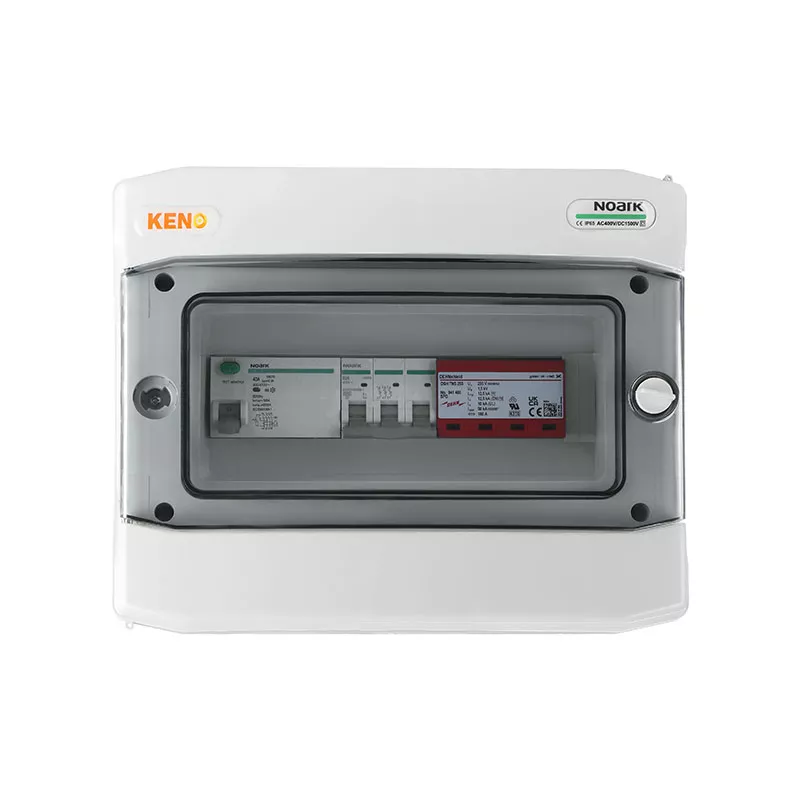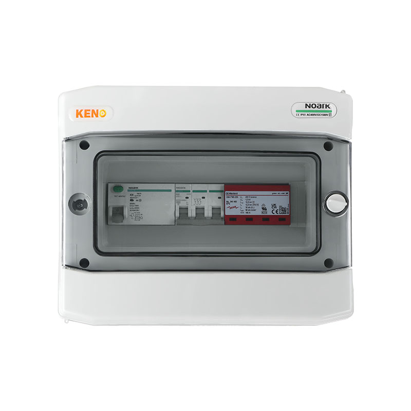 Rozdzielnica przyłączeniowa polskiego producenta KENO przeznaczona jest do zasilania falowników fotowoltaicznych w uziemionych i izolowanych instalacjach fotowoltaicznych. Realizuje ochronę przed skutkami zwarć i przeciążeń, a także ochronę przed skutkami wyładowań pośrednich oraz bezpośrednich po stronie prądu zmiennego. Dzięki wysokiemu stopniu ochrony IP możliwy montaż na zewnątrz. Konstrukcja rozdzielnicy przeznaczona do montażu natynkowego. Rozdzielnice w zależności od wyposażenia mogą realizować różne funkcje.