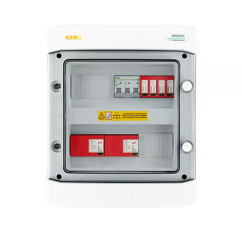 Rozdzielnica przyłączeniowa polskiego producenta KENO przeznaczona jest do zasilania falowników fotowoltaicznych, zabezpieczenia przed skutkami zwarć i przeciążeń, a także ochrony przed skutkami wyładowań pośrednich (AC) oraz bezpośrednich (DC). Rozdzielnicę należy stosować w uziemionych i izolowanych instalacjach fotowoltaicznych. Dzięki wysokiemu stopniu ochrony IP możliwy montaż na zewnątrz. Konstrukcja rozdzielnicy przeznaczona do montażu natynkowego. Rozdzielnice w zależności od wyposażenia mogą realizować różne funkcje.