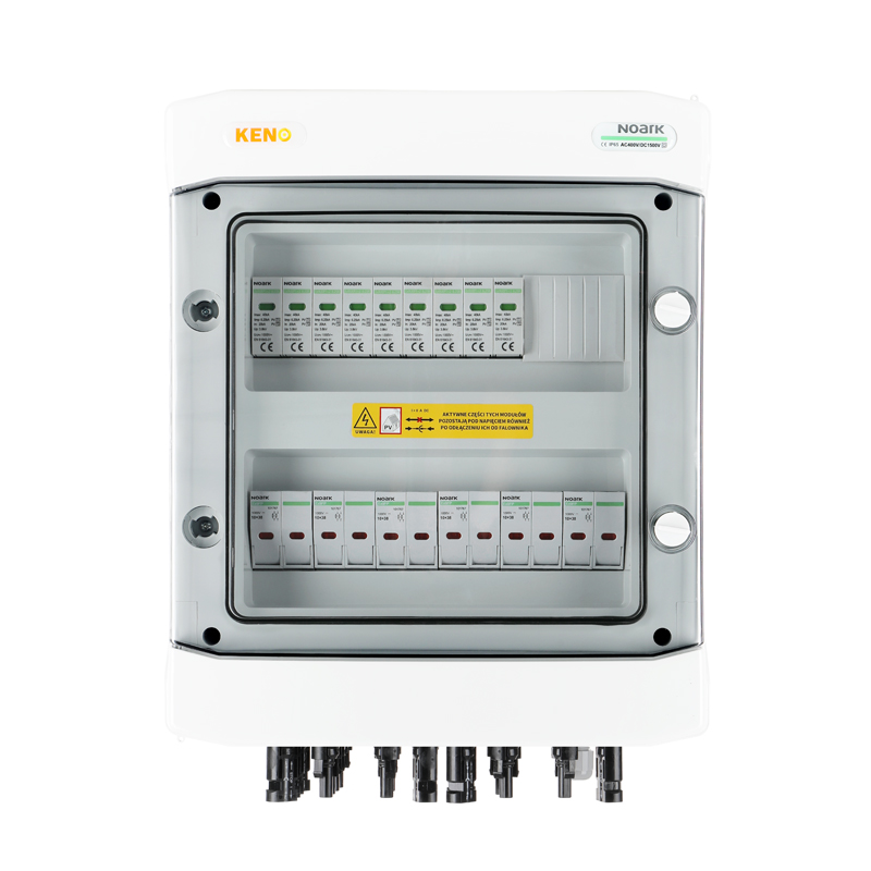 Rozdzielnica przyłączeniowa DC z ogranicznikiem przepięć DC Noark 1000V typu 1+2, 6x łańcuch PV, 3x MPPT, 12x zab. przet. 20A