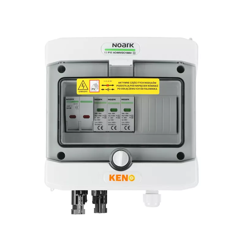 Rozdzielnica przyłączeniowa DC z ogranicznikiem przepięć DC Noark 1000V typu 1+2, 1x łańcuch PV, 1x MPPT, 2x zab. przet. 20A