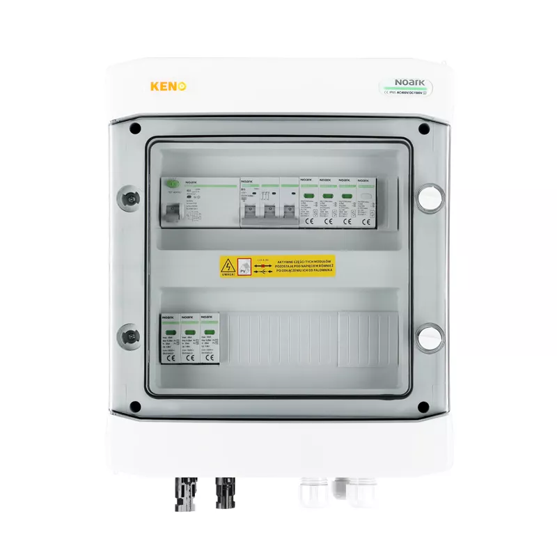 Rozdzielnica przyłączeniowa DC+AC z ogranicznikiem przepięć Noark 1000V typu 1+2, 1 x łańcuch PV, 1 x MPPT // ogr. AC Noark typ 1+2, 10A 3-F, róż. 100mA 40A