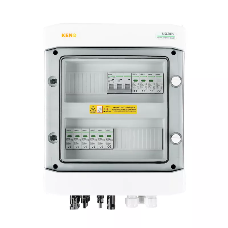 Rozdzielnica przyłączeniowa DC+AC z ogranicznikiem przepięć Noark 1000V typu 1+2, 4 x łańcuch PV, 2 x MPPT // ogr. AC Noark typ 1+2, 40A 3-F