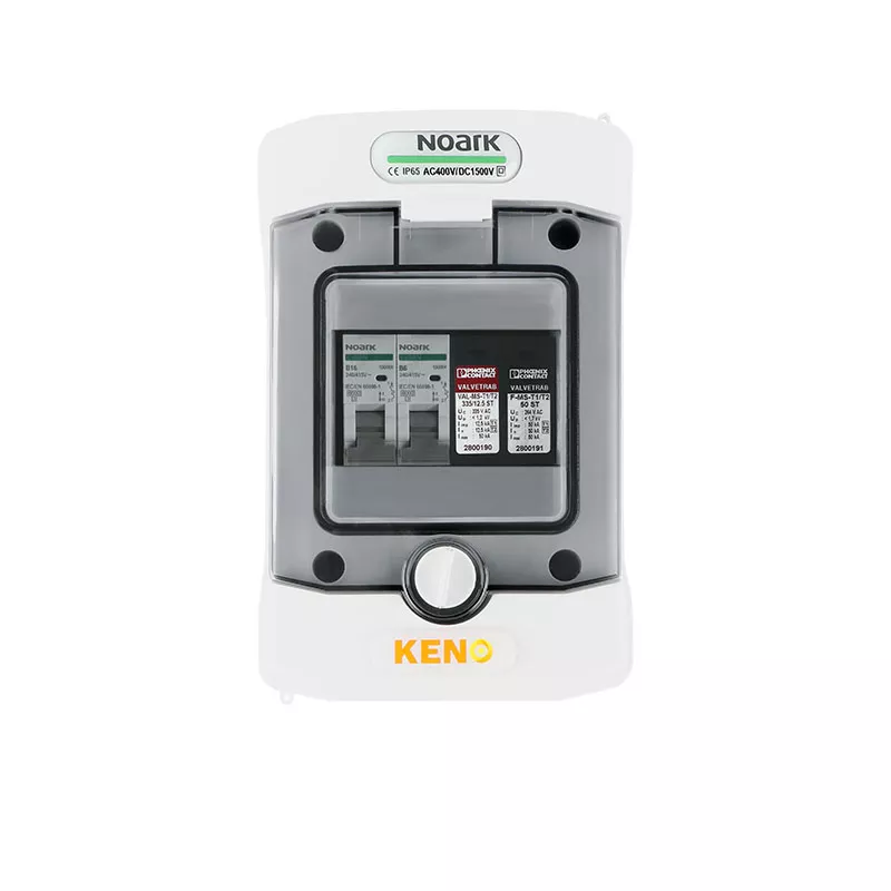 Rozdzielnica przyłączeniowa polskiego producenta KENO przeznaczona jest do zasilania falowników fotowoltaicznych w uziemionych i izolowanych instalacjach fotowoltaicznych. Realizuje ochronę przed skutkami zwarć i przeciążeń, a także ochronę przed skutkami wyładowań pośrednich oraz bezpośrednich po stronie prądu zmiennego. Dzięki wysokiemu stopniu ochrony IP możliwy montaż na zewnątrz. Konstrukcja rozdzielnicy przeznaczona do montażu natynkowego. Rozdzielnice w zależności od wyposażenia mogą realizować różne funkcje.