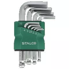 Klucze sześciokątne 1.5-2-2.5-3-4-5-6-8-10mm imbusy z kulką krótkie CrV STALCO S-48368